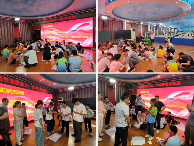 理论讲解结束后,现场还开展了趣味科学实验活动。同学们两人一组,利用4张纸为鸡蛋设计缓冲防护装置,并让鸡蛋从1米高处落下,以鸡蛋不破损为挑战成功。