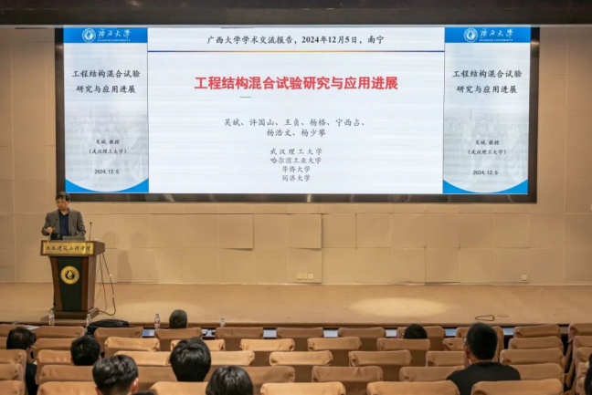 12月5日下午,武汉理工大学吴斌教授在我院大型结构试验研究平台第六报告厅作了题为“工程结构混合试验研究与应用进展”的学术报告。本次报告由我院副院长赵林教授主持。